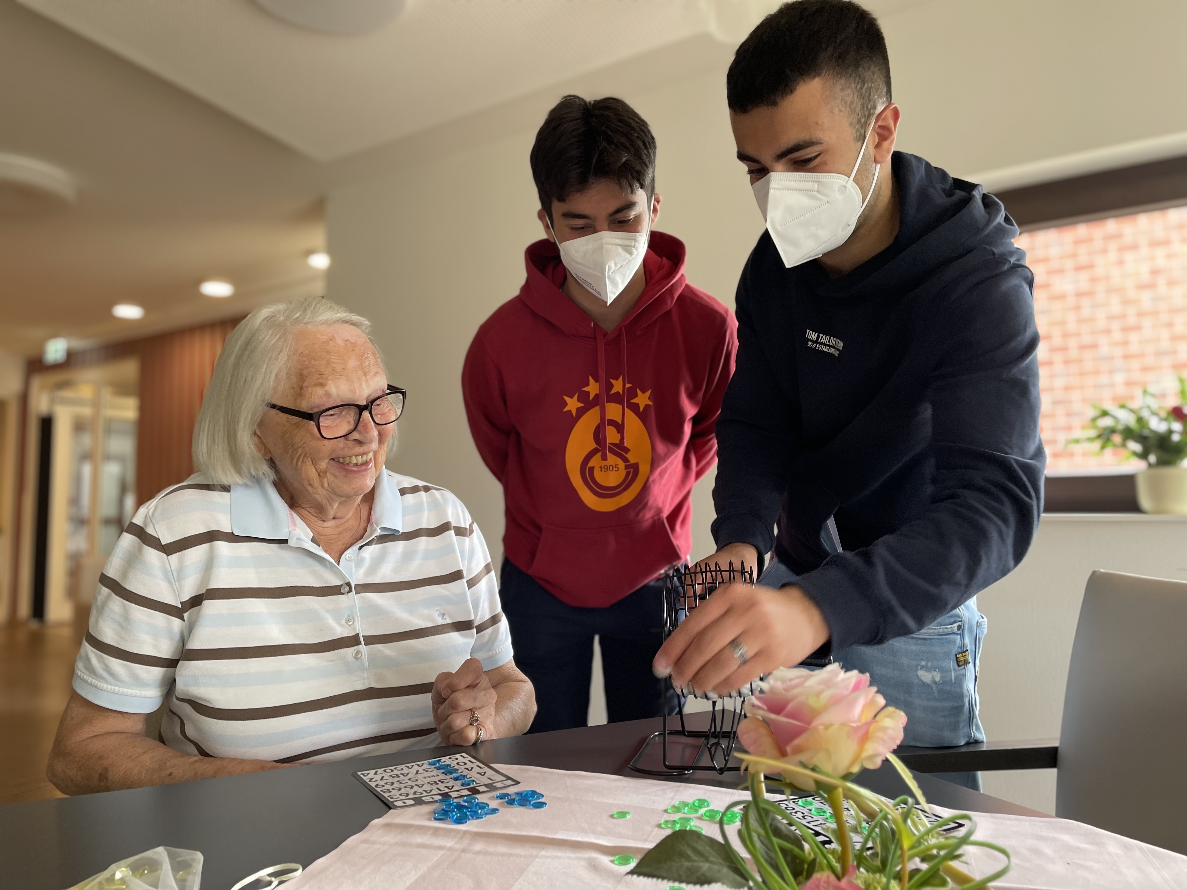 Einmal die Woche besuchen die Kinder und Jugendlichen der die nahegelegene Senioreneinrichtung und bringen Leben, Lachen und Abwechslung in den Alltag der Bewohner:innen. Sie spielen Bingo, kümmern sich im Rahmen einer Garten AG gemeinsam mit den älteren Menschen um die Pflege der Beete oder backen in der Weihnachtszeit Plätzchen. Davon profitieren alle: Viele der Jugendliche haben keine Großeltern mehr und bekommen durch die Senior:innen Zuwendung und Unterstützung. Die wiederum freuen sich über die lebhafte Gesellschaft. So entsteht eine wertvolle Brücke zwischen den Generationen, in der junge und ältere Menschen voneinander lernen, gemeinsam Freude erleben und sich gegenseitig Halt und neue Perspektiven schenken.
