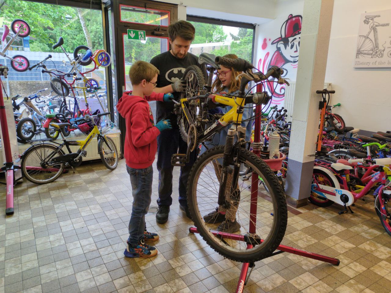 In den vergangenen zehn Jahren wurden über 700 Räder aufbereitet und weitergegeben, mehrere Tausend repariert. Allein 2024 erhielten 124 Kinder ein eigenes Fahrrad. Geöffnet ist die Werkstatt montags bis donnerstags von 15 bis 18 Uhr. Getragen wird das Projekt von einem kleinen Team: Werkstattleiter Cedrik Görgen ist Sozialpädagoge und Metallbauer, unterstützt wird er von KFZ-Mechaniker Stefan Torp sowie drei ehrenamtlichen Helfer:innen. Eltern und Anwohner:innen bringen sich regelmäßig ein und helfen beim Schrauben.